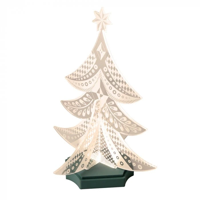 Porta la magia del Natale in casa (o in ufficio) con la nostra lampada decorativa a forma di albero di Natale. Con una base in verdone e una grafica incisa a laser con pattern esclusivi, questo oggetto trasforma una semplice luce in un elemento di design originale e raffinato.