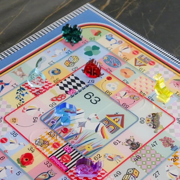 Rivivi la magia del classico gioco dell’oca, reinterpretato da Vesta in una versione creativa, colorata e raffinata. Vest’oca è molto più di un semplice passatempo: è un oggetto di design made in Italy, perfetto da giocare… e da esporre!
