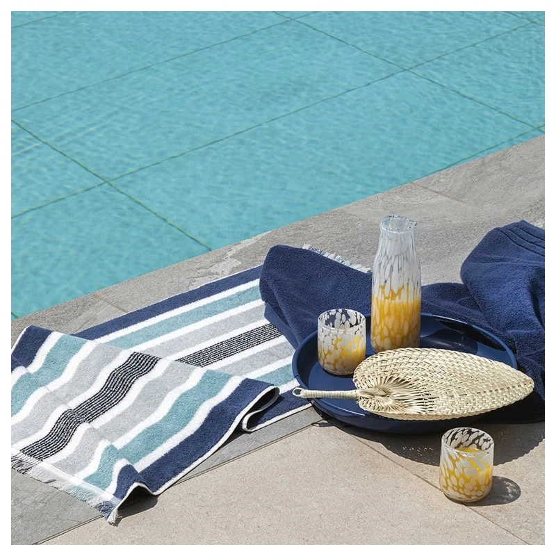 Realizzata in cotone di qualità tinto in filo, la spugna Gradazioni si aricchisce di nuovi colori per accostarsi alle differenti stagioni con il suo sempre attuale motivo a righe.