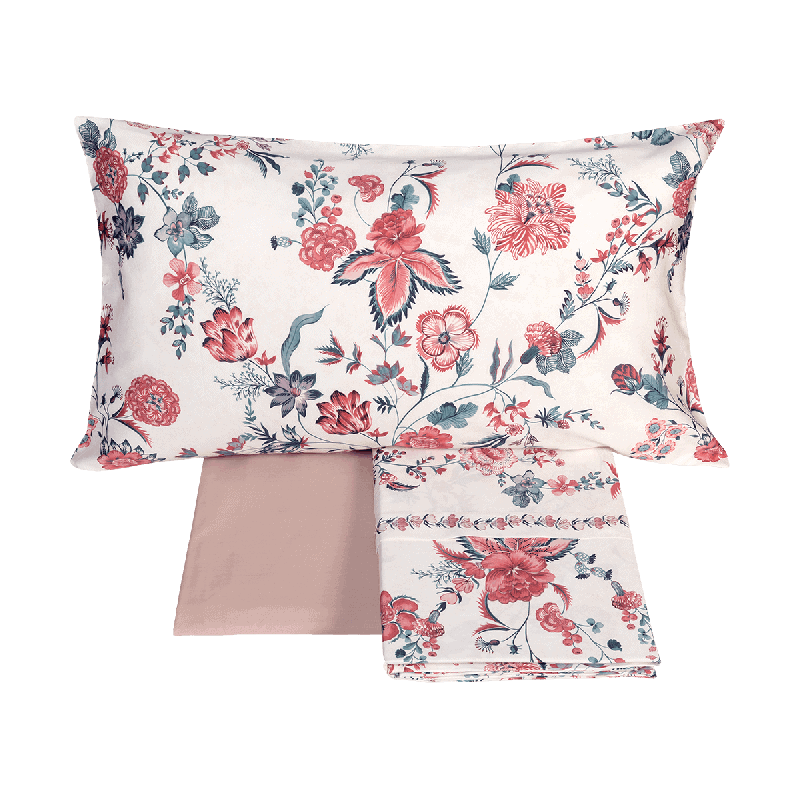 Il lenzuolo copriletto e le federe sono stampati. Il lenzuolo con angoli è in tinta unita.