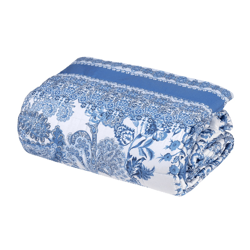 Quilt realizzato in raso di puro cotone 300TC stampato in digitale ad altissima risoluzione, trapuntato a quadri con quattro angoli vivi.